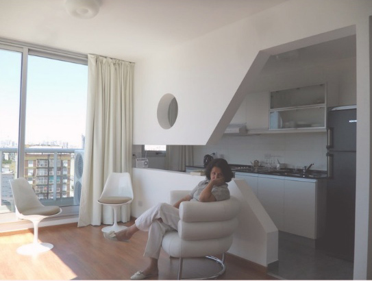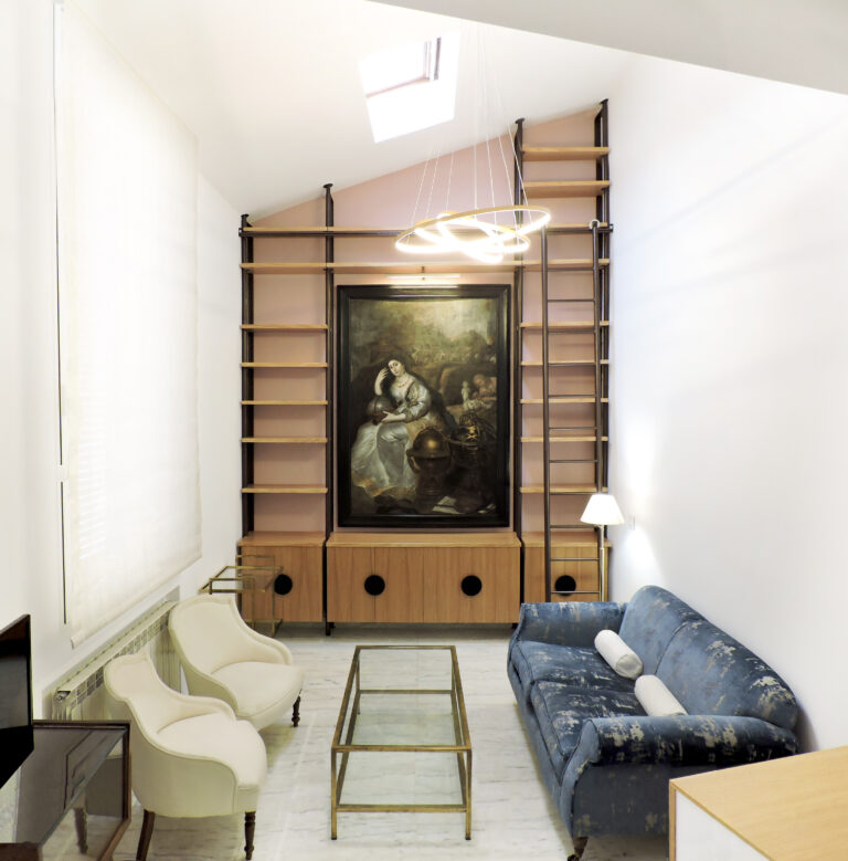 Llena de luz y rodeada de enormes espacios verdes no nos costó entender porque su dueña había escogido esta casa para vivir. Desde sus 40 metros de altura, se divisa todo Madrid.