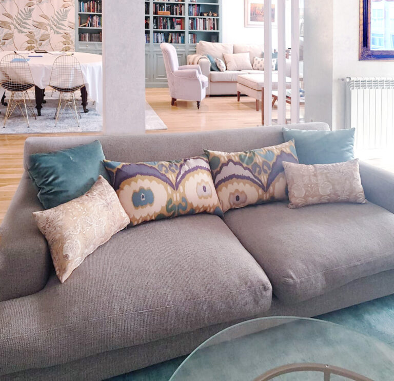 Los propietarios de esta vivienda en la zona de Cuzco (Madrid) habían hecho obras de reforma hacia pocos años, sin embargo no se sentían a gusto con el aspecto de los espacios de su cases, y en particular del salón principal, un espacio muy grande en el que se distribuye un comedor, una zona de descanso familiar, y un espacio de estar más formal.