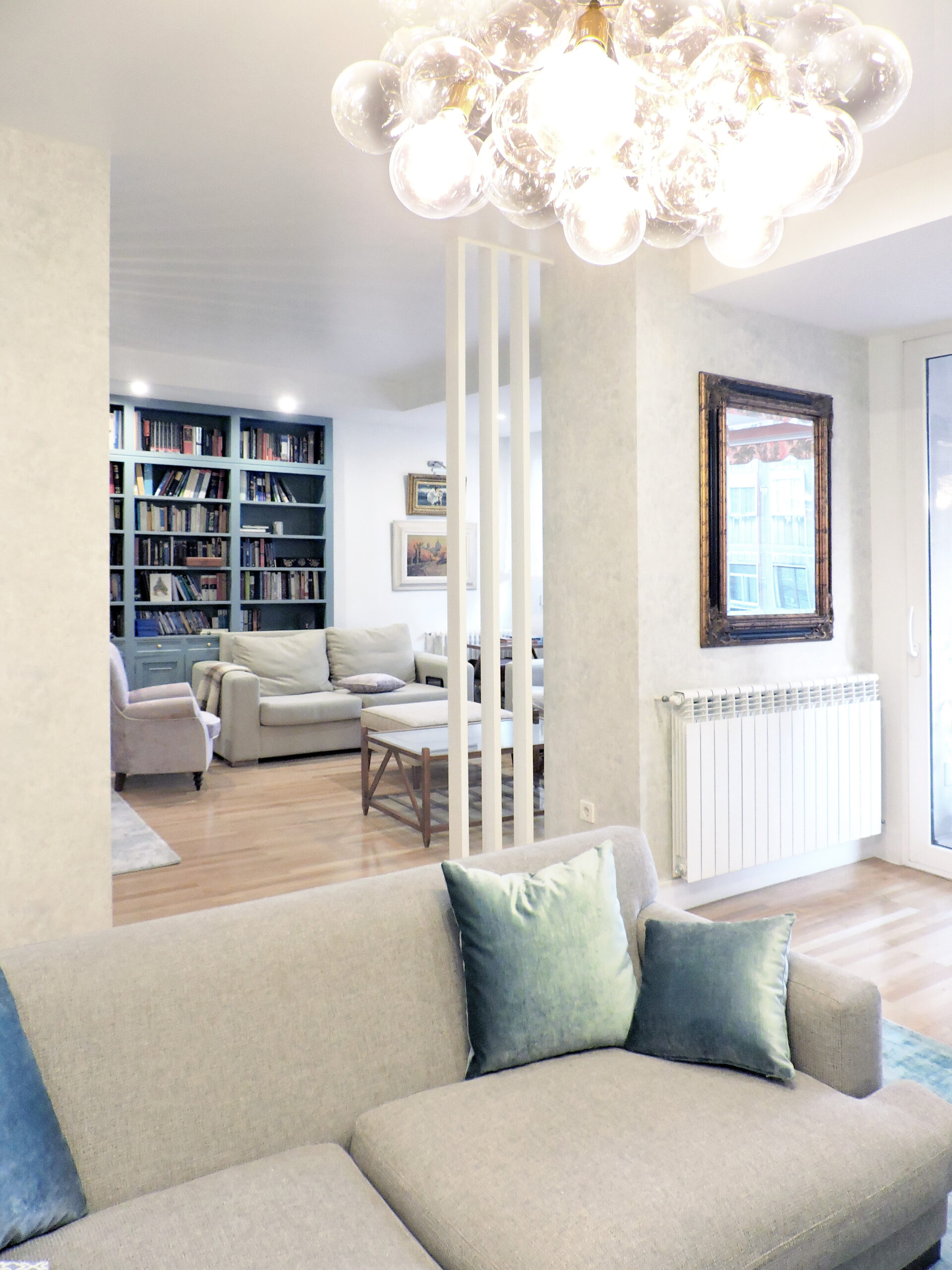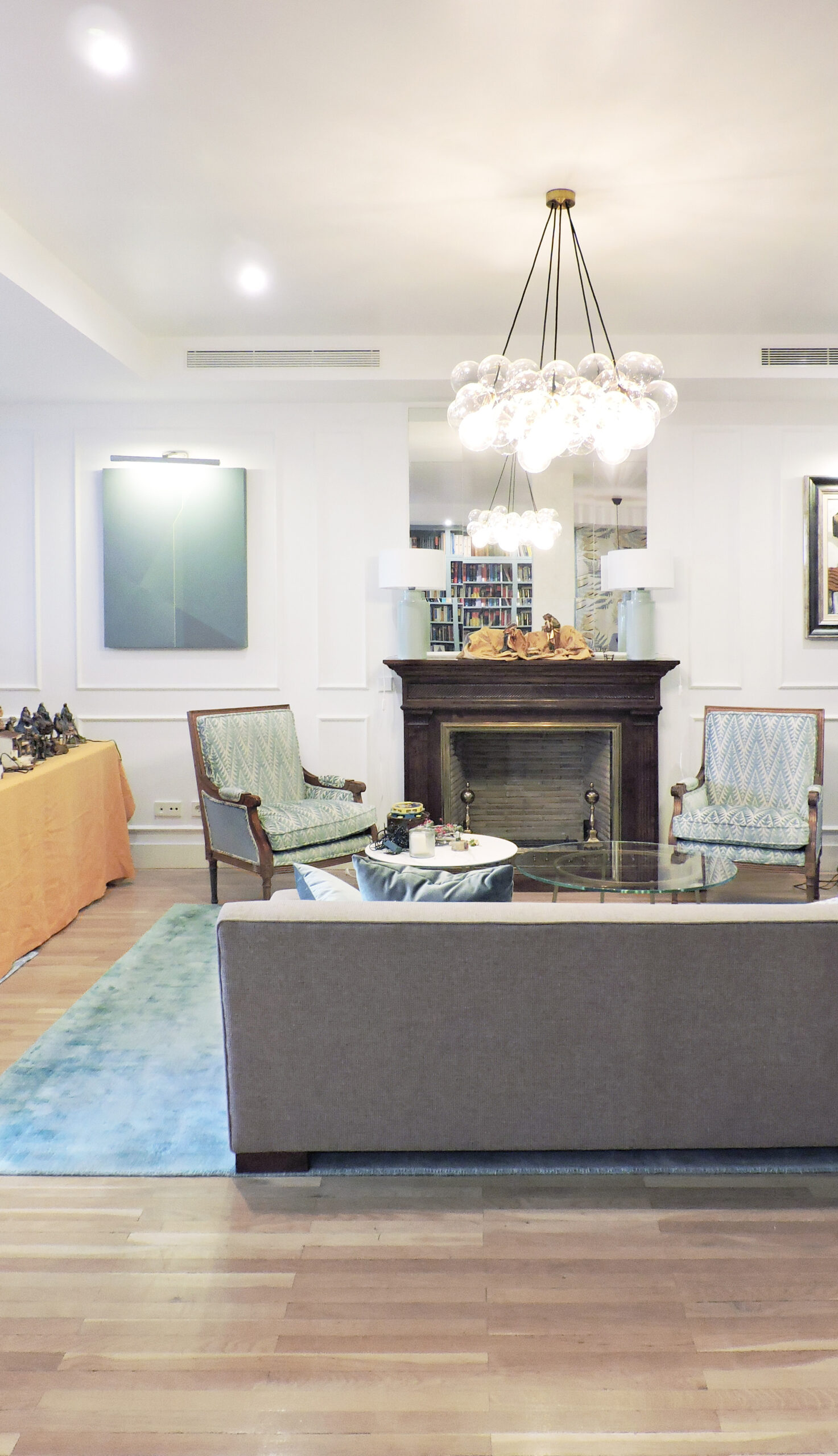 Nos contactaron para hacer un proyecto puramente de arquitectura interior, redefiniendo estos espacios, su distribución, colores, acabados y texturas… Y buscando una nueva ubicación para algunas piezas de mobiliario heredades, que combinaríamos con nuevos elementos de mobiliario moderno, renovando la imagen general de la sala.